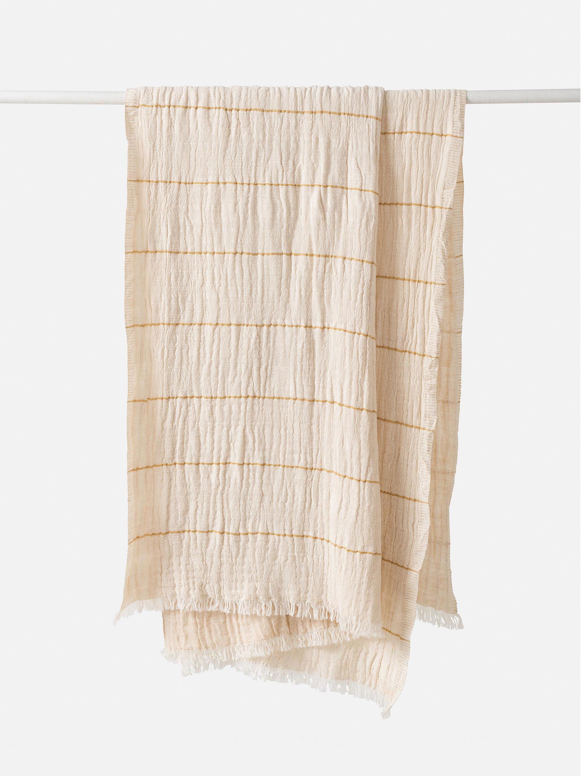The lightweight August Throw adds a relaxed layer on summer evenings. Double woven from a blend of cotton, lambswool and bamboo to create a soft, organic finish. The design features a thin butternut stripe and is finished with fringe detailing.